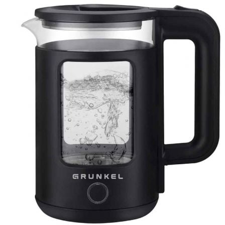 Hervidor de GRUNKEL HV-18CWPNG, 1,8 L, 1500W, visor, luz indicadora, autoapagado, recogecable y diseño negro moderno.